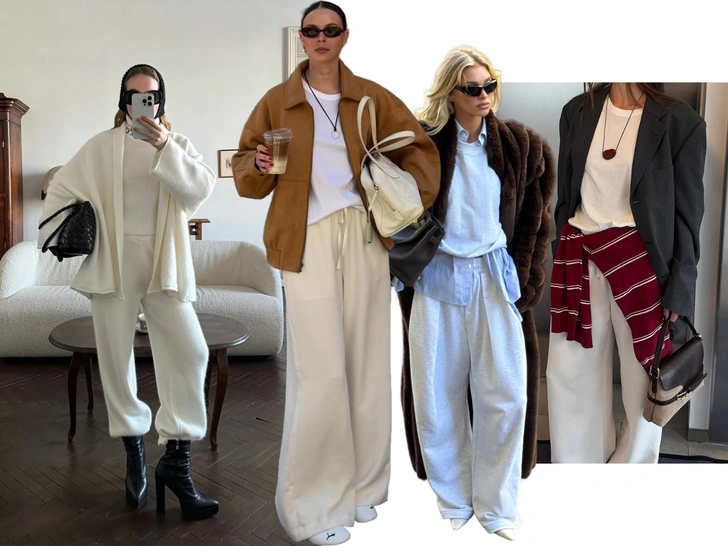 Уютный, но крайне стильный вариант — носить мягкий трикотажный низ со свитером. Это сочетание обожают Рози Хантингтон-Уайтли, Эльза Хоск и другие поклонницы минимализма. Сверху стоит лишь накинуть объемную верхнюю одежду — дубленку, оверсайз-пальто или укороченный пуховик, и образ готов (читайте также: Как одеться на корпоратив в стиле Рози Хантингтон-Уайтли — королевы минимализма).