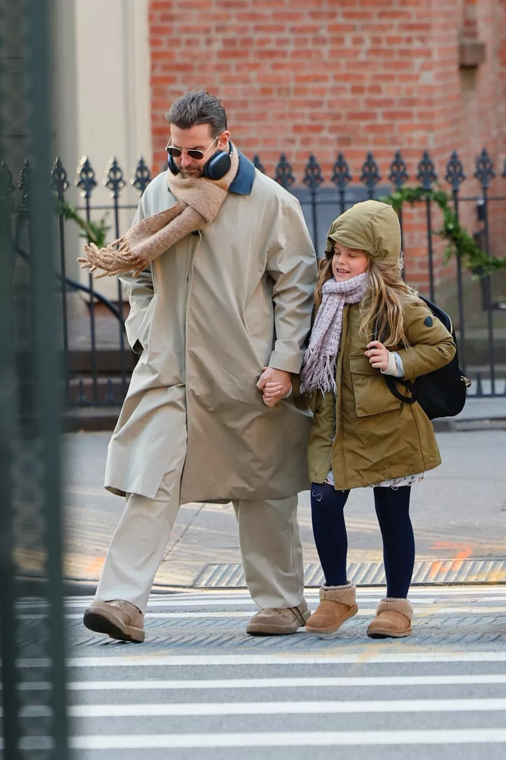 Нью-йоркские папарацци регулярно замечают то Ирину Шейк, то Брэдли Купера с их общей дочерью Леей: именитые родители водят Лею на занятия по гитаре, по магазинам и на повседневные пешие прогулки по городу. И вчера, 11 декабря, пришел черед звездного отца заниматься наследницей. Одевшись в стильный аутфит, 50-летний Брэдли выбрался с девочкой на улицы Большого яблока.