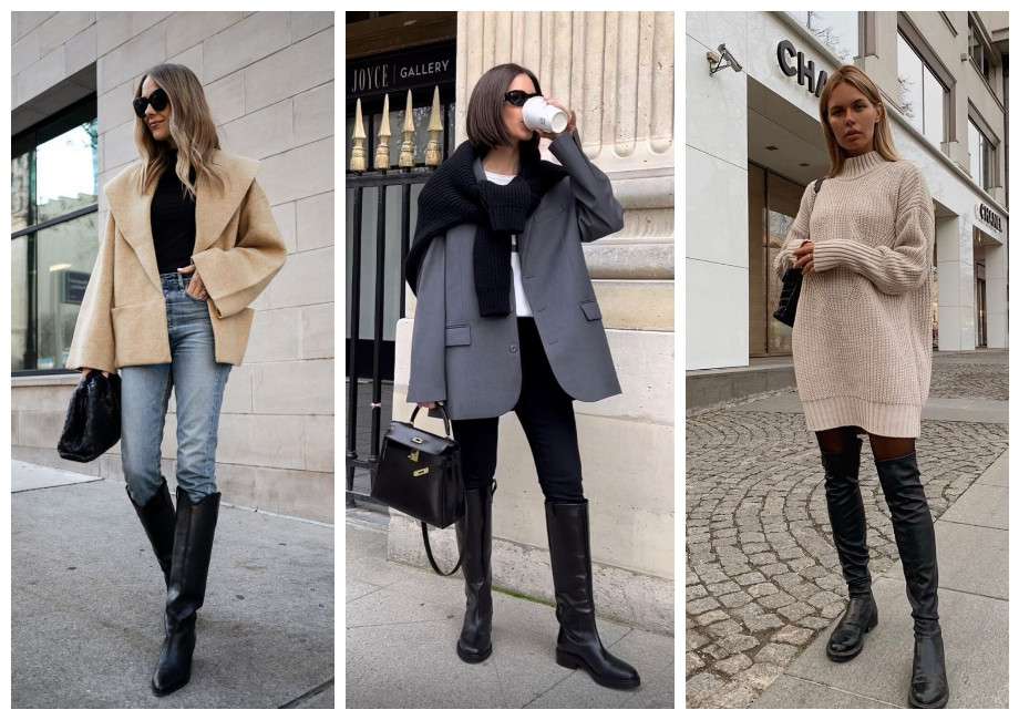 — Играйте с пропорциями: объемный верх (свитер оверсайз) хорошо сочетается с облегающими сапогами.