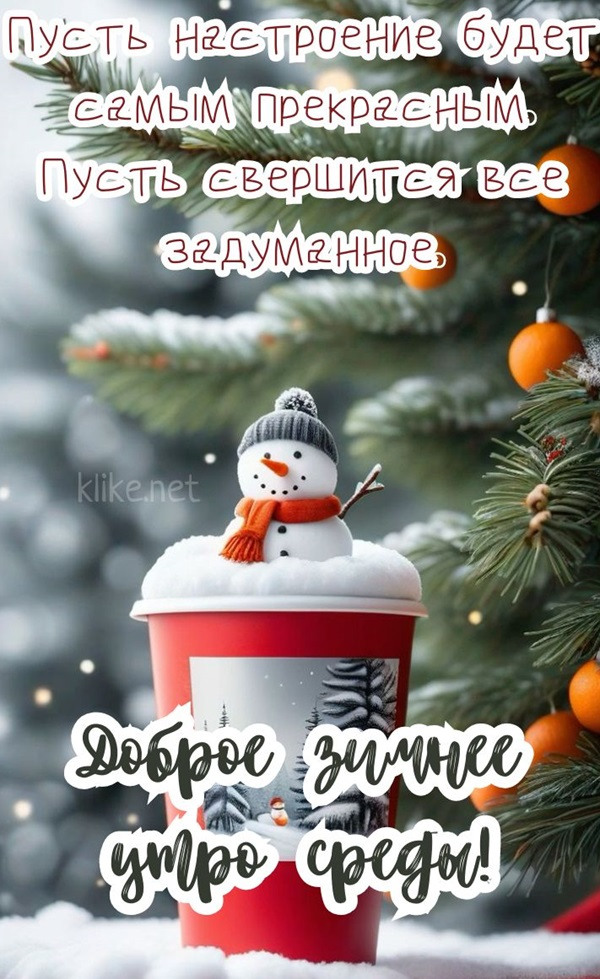 Классная подборка — картинки и открытки доброе зимнее утро среды! Когда за окном царит белое безмолвие, а воздух свеж и немного колюч, особенно приятно начинать день с хороших мыслей и предвкушения уюта. Пусть это время принесет вам покой, домашнее тепло, зарядит энергией для всех начинаний и наполнит душу ощущением гармонии с окружающим миром и самим собой.