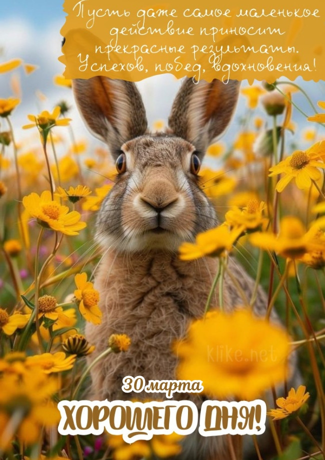 Комфортная подборка — картинки и открытки на 30 марта: крутые и вкусные пожелания на утро, день, вечер и ночь. Время, когда можно наблюдать настоящее чудо — как буквально на глазах оживает казавшаяся мертвой природа, особенно вдохновляет. Желаю, чтобы и ваши творческие способности расцветали так же буйно, как весенние сады. Отправьте картинку бесплатно или скачайте.