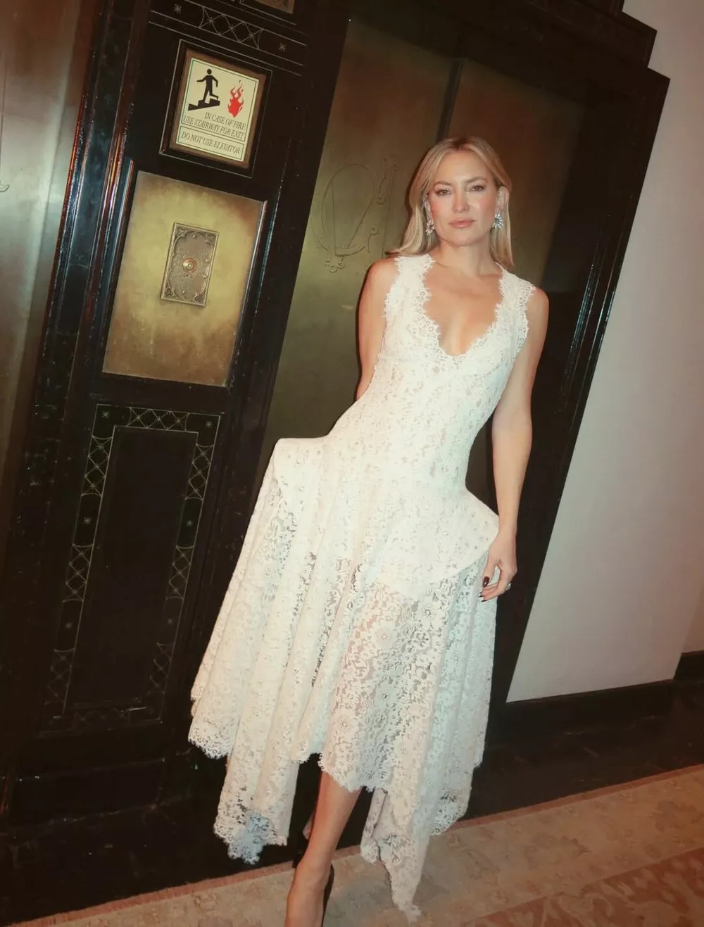 Кейт Хадсон посетила вечеринку «Золотого глобуса» в белых кружевах