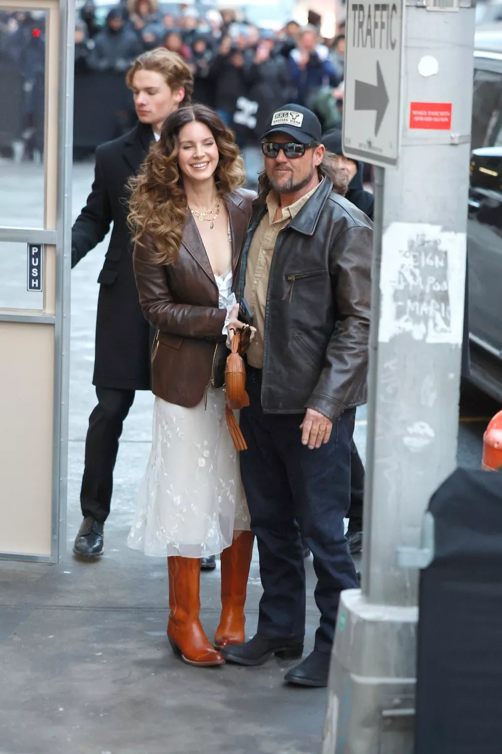 Дель Рей и ее муж выбрали стильные наряды, которые гармонично сочетались друг с другом и соответствовали классическому стилю бренда. Певица позировала в коричневом кожаном пиджаке поверх воздушного белого платья с длинными рукавами. Для светского выхода Лана выбрала неожиданную прическу — если ранее артистку привыкли видеть с идеально уложенными прямыми волосами, в этот раз Дель Рей отдала предпочтение крупным кудрям. Ее супруг Джереми подобрал стильный образ из бежевой рубашки, которую сочетал с темно-синими брюками и кожаной коричневой курткой. Посмотрите образы других звезд на показе Ralph Lauren.