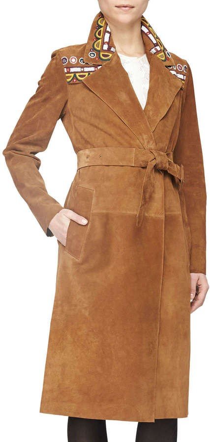 Осень, как известно, холодна, а длинные замшевые плащи — это хороший выбор на всякий раз, когда дуют холодные ветра.