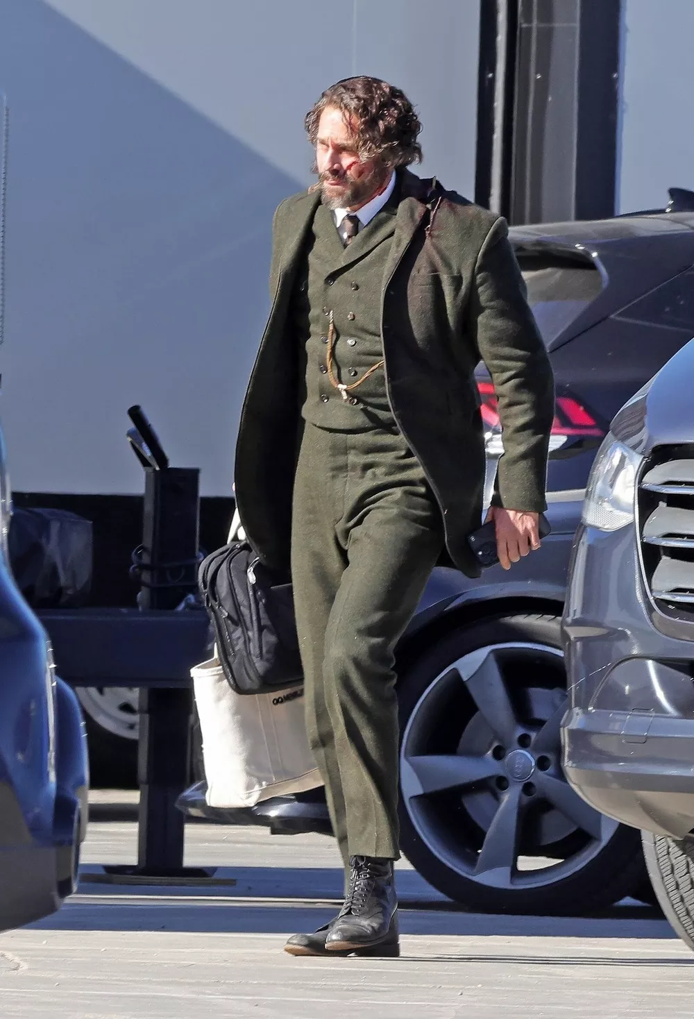 На съемках актеру нанесли “кровавый” грим, а также перекрасили его светлые волосы и бороду в каштановый цвет. Чарли был одет в оливковый костюм-тройку с винтажной брошью на жилете и высокие кожаные ботинки, а в руках нес черный портфель.