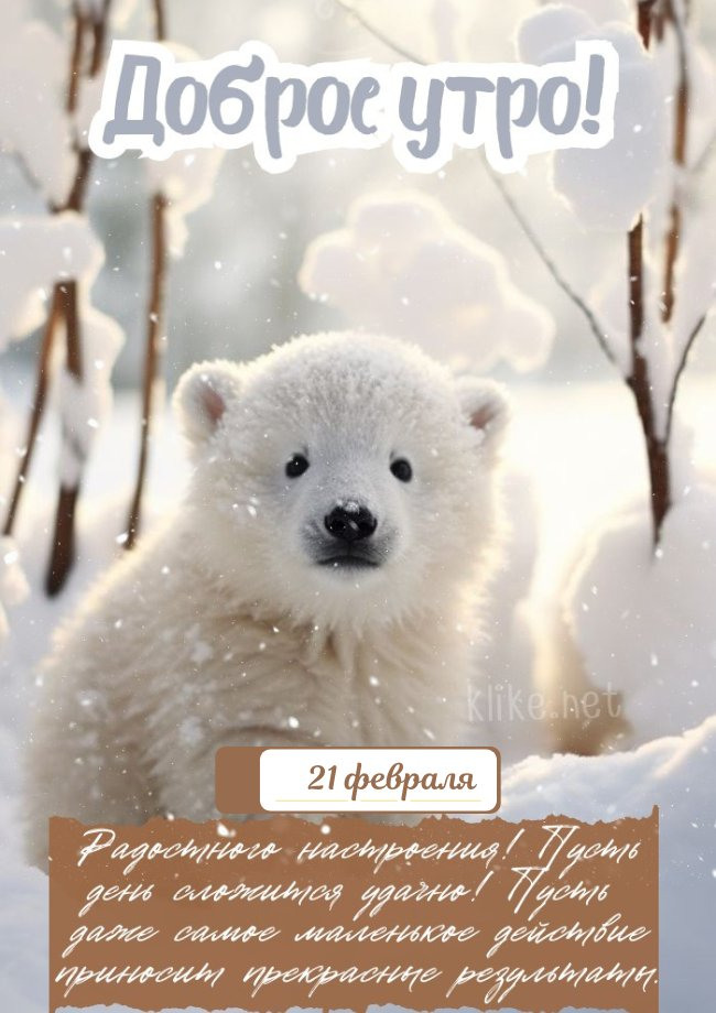Потрясающая подборка — открытки и картинки доброе утро 21 февраля! В эту пору особенно приятно находить гармонию между спокойствием и движением. Желаем уверенности в себе, ясности в мыслях и много поводов для радости.