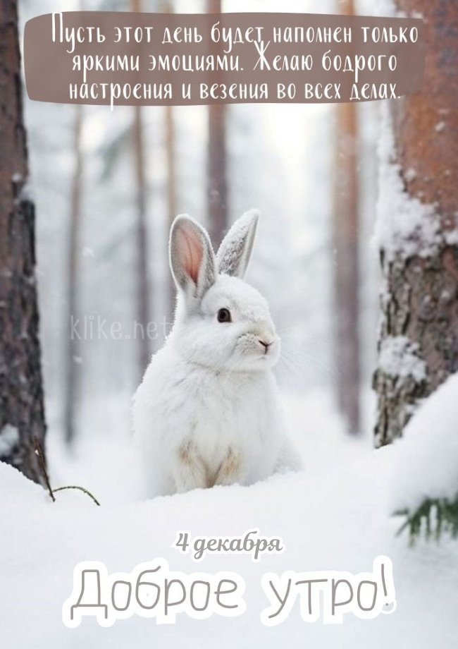 Славная подборка — открытки и картинки на 4 декабря: погожие и увлекательные пожелания на утро, день, вечер и ночь. Новогодние огни зажигаются в витринах магазинов и на улицах городов, наполняя сердца предпраздничным настроением. Желаю вам ощутить это волшебное ожидание чуда, когда даже взрослые ненадолго становятся детьми.