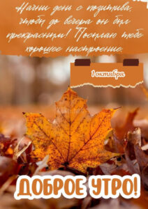 Хорошая подборка — открытки и картинки на 1 октября: превосходные и расслабляющие пожелания на утро, день, вечер и ночь. Желтая листва теперь полностью захватила парки и леса, создавая волшебные тоннели из жёлтых и багряных крон. Пусть эти дни подарят вам ощущение уютного волшебства, когда каждый взгляд в окно открывает живую картину, достойную кисти художника. HTML-код …