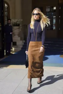 В среду, 4 марта, Рози Хантингтон-Уайтли вышла из штаб-квартиры бренда The Row, чтобы отправиться на очередной показ в рамках Недели моды в Париже. Рози выглядела элегантно в обтягивающем топе с высоким воротом и замшевой юбке, когда ее застали папарацци и фанаты. Модель улыбнулась поклонникам и села в автомобиль. Свой образ она дополнила черными туфлями на …