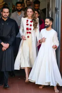 Молочное платье и бусы из роз: Кейт Миддлтон встретилась с индийской общиной