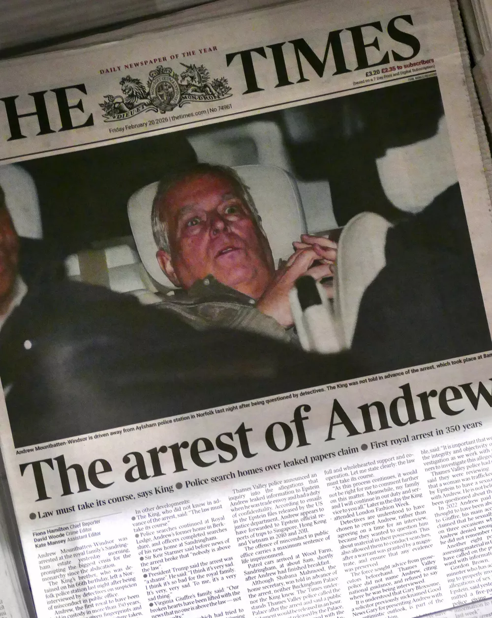 Вчера, в день своего 66-летия, экс-принц Эндрю (младший брат короля Великобритании Карла III) был задержан полицией в поместье Сандрингем по громким обвинениям в связах с Джеффри Эпштейном, которые в органах назвали “ненадлежащим поведением на государственной службе”. Лишенный титула герцог провел на допросе почти 11 часов, прежде чем его отпустили домой.