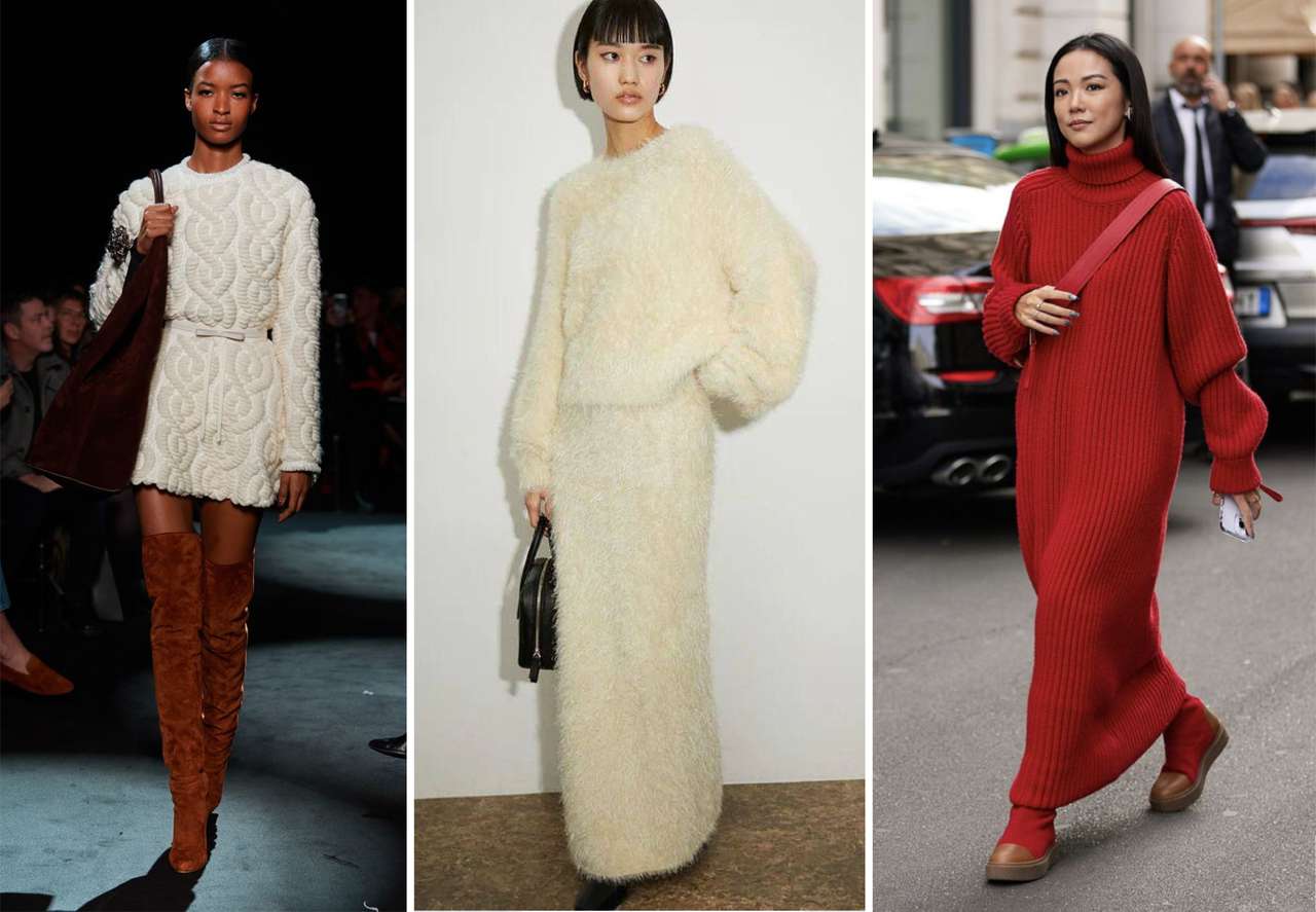Свитер‑дресс миди: расслабленно и тепло