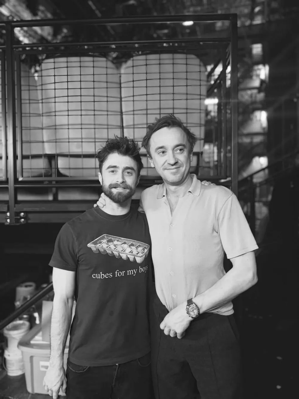 Исполнитель культовой роли Гарри Поттера Дэниел Рэдклифф на один вечер присоединился к актерскому составу бродвейского мюзикла “Гарри Поттер и проклятое дитя”, где его коллега Том Фелтон, известный по роли Драко Малфоя, является постоянным членом каста. Свою редкую встречу давние друзья, сыгравшие в оригинальном “Гарри Поттере” заклятых врагов, запечатлели на фото, которыми Том щедро поделился с поклонниками в социальных сетях.